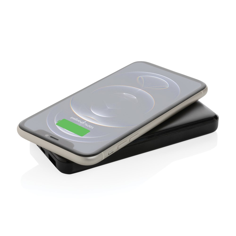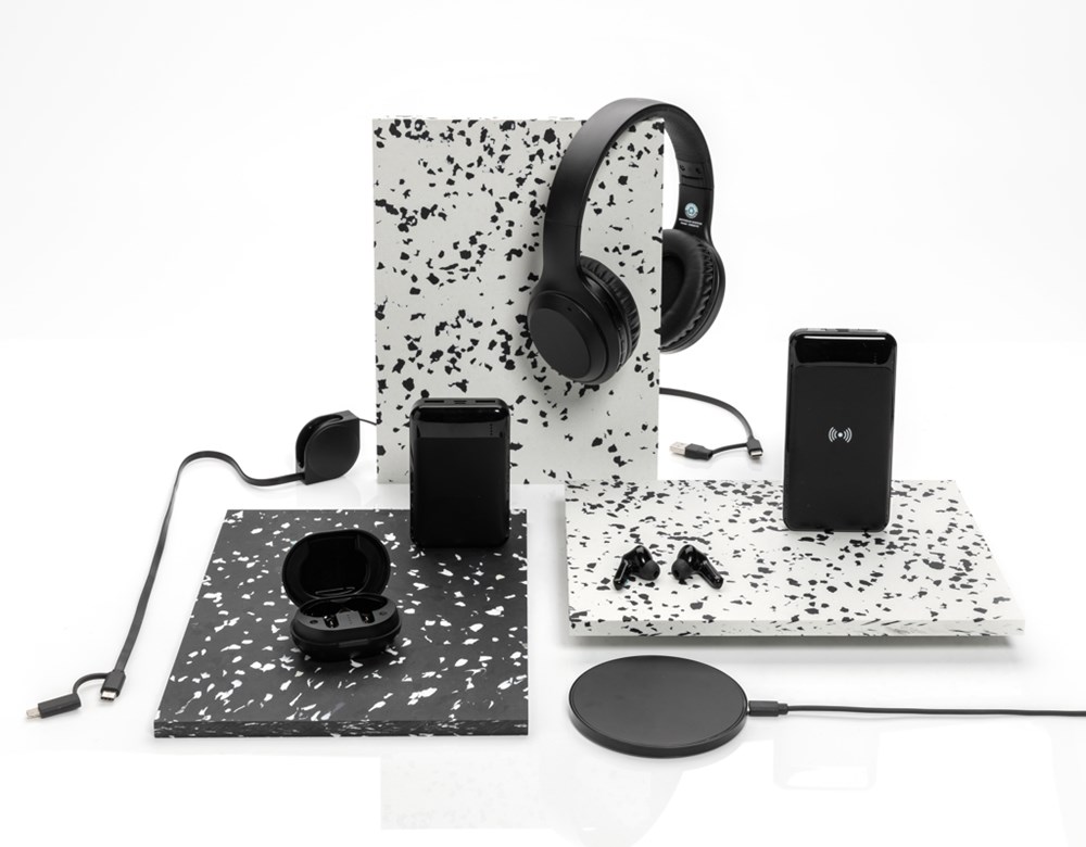 8.000 mAh powerbank met 5W draadloze oplader waarbij de behuizing is gemaakt van RCS-gecertificeerd gerecycled ABS-plastic. RCS (Recycled Claim Standard) is een norm om de gerecyclede materialen van een product in de hele toeleveringsketen te verifiëren. RCS is de standaard die wordt gebruikt wanneer een deel van het artikel is gemaakt van gerecyclede materialen. Als de powerbank volledig is opgeladen, heeft u genoeg energie om uw mobiele telefoon tot vier keer op te laden. De powerbank bevat een duurzame A kwaliteit 8.000 mAh lithium-polymeer batterij. De stroomindicatoren geven het resterende energieniveau aan, zodat u altijd weet wanneer u moet opladen. Type-C-input 5V/2A; Micro-USB-input 5V/2A; Draadloze output 5W; 2x USB-input: 5V/2A; Artikel en accessoires PVC vrij. Inclusief PVC-vrije oplaadkabel van gerecycled TPE-materiaal