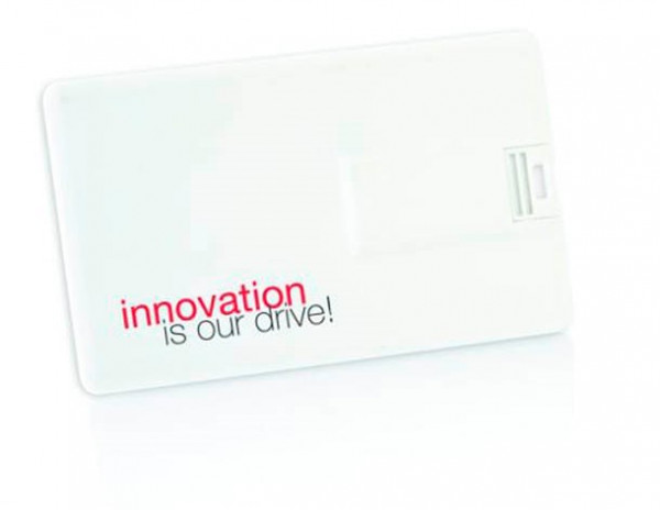 Platte kunststof USB stick. Ideaal om geheel in full colour te bedrukken